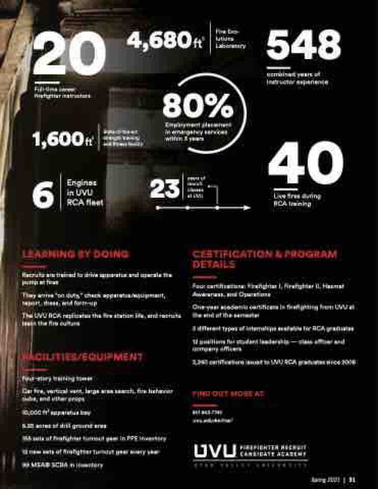 One-year academic certificate in firefighting from UVU at the end of the semester