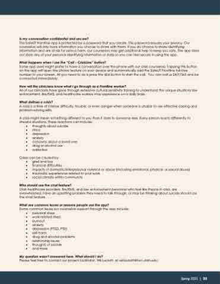 Utah healthcare providers, fire/EMS, and law enforcement personnel who feel like they're in crisis, are overwhelmed, have an upsetting problem they need to talk through, or may be thinking about suicide should use the chat feature.
