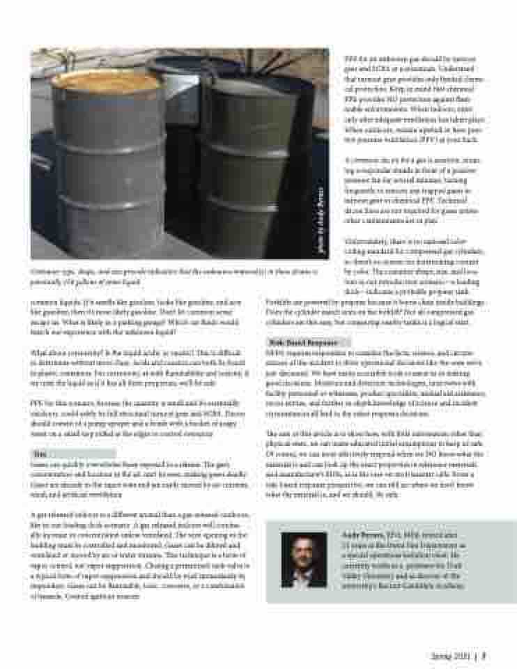 The aim of this article is to show how, with little information other than physical state, we can make educated initial assumptions to keep us safe. Of course, we can most effectively respond when we DO know what the material is and can look up the exact properties in reference materials and manufacturer’s SDSs, as is the case on most hazmat calls. From a risk-based response perspective, we can still act when we don’t know what the material is, and we should. Be safe.